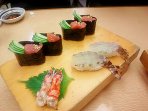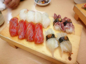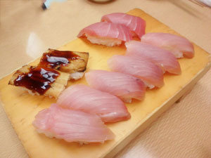 左奥からあなご・右奥:まぐろ・手前:寒ブリ