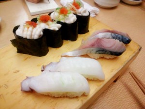 奥からしらこ・左手前:生だこ・右手前:しめさば