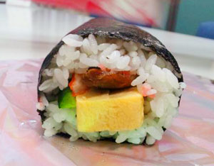 かんぴょう、キュウリ、椎茸、だし巻、ウナギ、でんぶなどが入っているそうです。